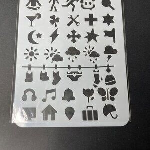 Enhance your artistic exploration with our Reusable Art Planner Stencil Activity Weather Laundry Mixed Media Supplies. Made from durable, solid colored plastic, this white stencil is perfect for planner, bullet journal, and mixed media art.