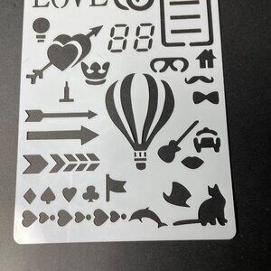 Reusable Art Planner Stencil Speech Bubbles Tear Drop mq Arrows Checklist Hearts
