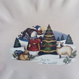 This reusable canvas bag is perfect for your shopping needs. With a height of 13 inches and a length of 15 inches, it is spacious enough to carry all your items. The bag is made of durable canvas material, ensuring that it can be used again and again. The design features a winter-themed print with the message "Joy To The World", making it a great gift for the holiday season. Use it for your grocery shopping, trips to the farmer's market, or even as a stylish tote for everyday use. Get your hands on this eco-friendly and versatile bag today! Perfect to carry all your Christmas shopping purchases in or take to a holiday party or get together with all your stuff inside. Would be an awesome gift bag to put a Holiday gift in and they could reuse the bag again and again.