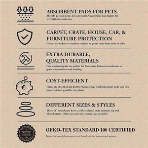 🧿EXTRA DURABLE, QUALITY MATERIALS: Our OEKO-TEK Standard 100 certified laminated pads have been rigorously tested and found to be extremely safe for both humans and animals and are perfect for floor mats, human incontinence or general animal care or training. They are waterproof and washable. Rounded corners help the pads lay well against box or crate walls.