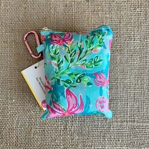 3 NWT Reusable Foldable Tote Bags Carabiner Clip Blue Green Pink