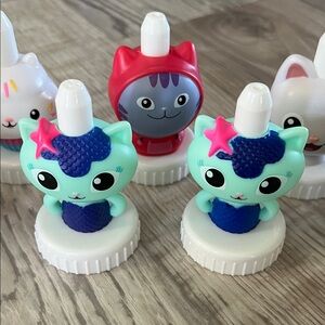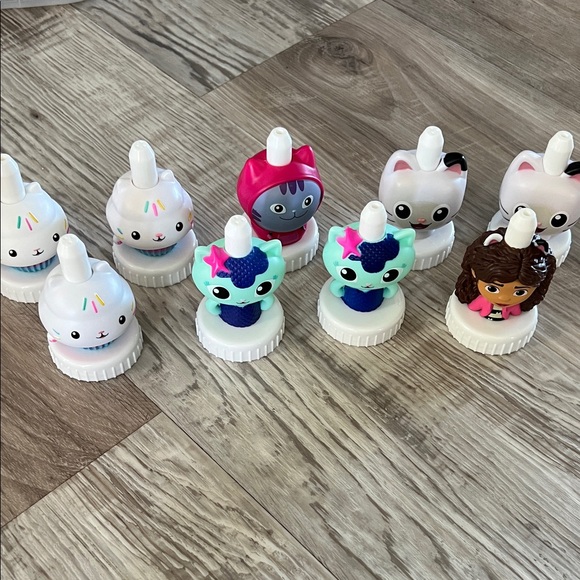 Fun Good2grow reusable bottle toppers with favorite Gabby’s Dollhouse cat characters including Gabby herself! This set includes all of the popular characters from the Gabby’s Dollhouse show in vibrant colors and playful designs. Designed to be used with reusable BPA-free Good2Grow bottles. All cleaned and only used once. Super cute collection! Machine washable as well. There are several that are duplicates.
