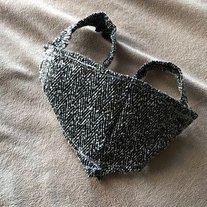 •The black and white one has two sides;to be flipped and worn with either design (smaller, kids)
