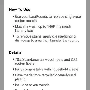 reusable rounds made from shape shifting fabric that feel just like cotton rounds when wet. Eco-friendly, it reduces carbon footprint by 90%. I'm offering 4 for $20. Each round countain 7 rounds each, giving you 28 rounds total.