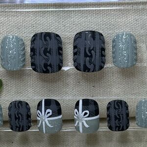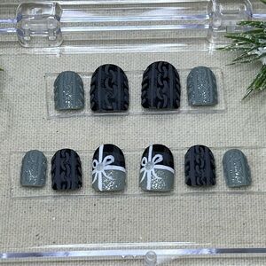 Reusable gray plaid sweater with gift accent nail press on nails. 20 piece set to assure you get a good fit! These are handmade by me. This will also come with a application kit that will include