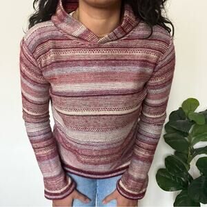 Reusch Meltex Knit Hoodie Top Small Red Multicolor Striped Gorpcore Cabincore