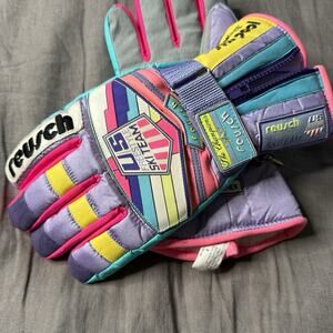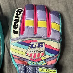 Reusch Snowboard Ski Vintage Gloves Neon 90s US Freestyle Ski Team Size 9