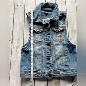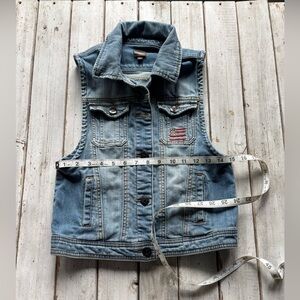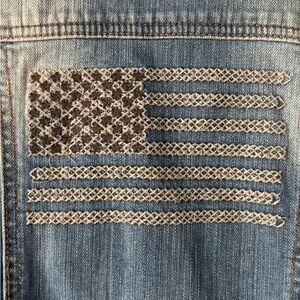 #ReuseDenim #AmericanFlagStyle #EmbroideredVest #PatrioticFashion #LayeringPiece #VintageVibes #StreetStyle #DenimLove #FestivalLook #FourthOfJulyReady