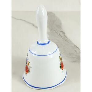Reutter Bell White Porcelain 5 1/2" Blue Trim Orange Floral Design 20s Germany