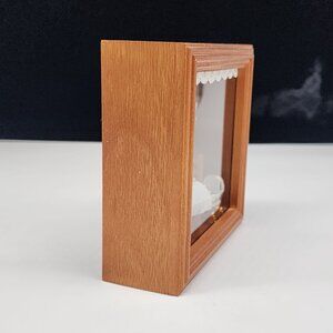 Minor wear on the tablecloth adds vintage charm. Frame has minor scratches