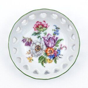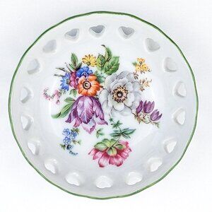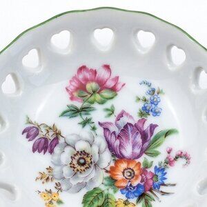 Reutter Small Porcelain Dish Reticulated Hearts Floral White Green Trim
