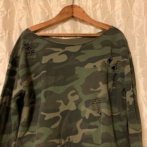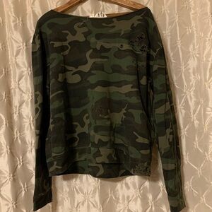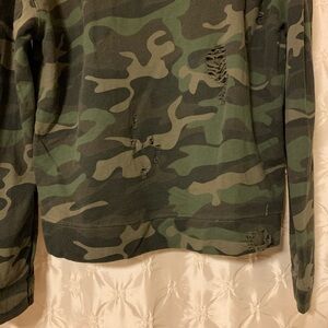 Rev by Revelation Distressed Green Camo French Terry Pullover Sweatshirt