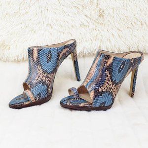 Rev it up slip on blue snake Leather Sandal Shoes