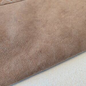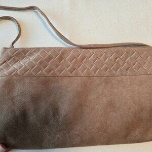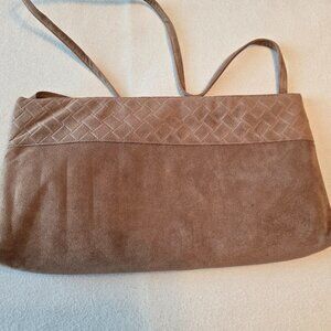 Reva Vintage Tan Clutch UltraSuede Suede Faux Fabric Quilt Basket Weave Look GUC