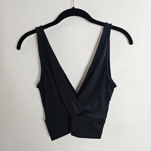 Revamped Black Deep-V Front & Back Faux Wrap Knit Crop Top Small