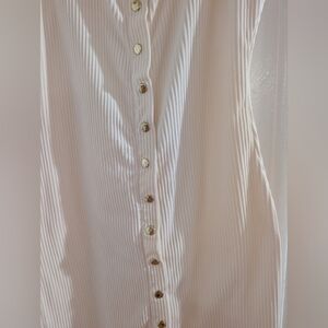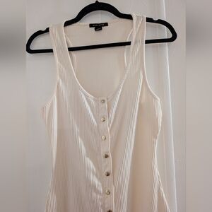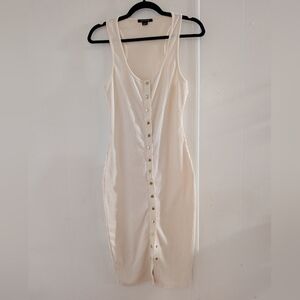 Chic cream midi dress with button-front detail. Perfect for versatile styling.