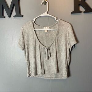 Revamped Gray Ribbed Front Tie Women's Short sleeve Top size medium