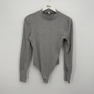 Revamped Gray Ribbed Long Sleeve Mock Neck Bodysuit Thong Size Medium