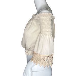 Revamped Shirt Womens XS Beige Bell Sleeve Lace Off The Shoulder Crop Neutral