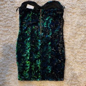 Revamped strapless sequin green/blue dress size L - NWT - Please ask question