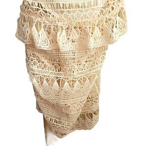 Pretty ivory cream color dress is lined on the top portion and open weave on the lower portion.