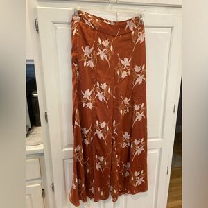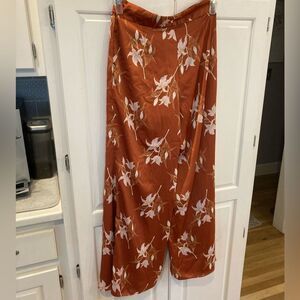 NEW without tags, super silky soft and flowing burnt orange floral Cropped tie top and high waisted 70s style pant.