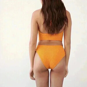 Revel Rey Womens Size Medium Shea Bikini Top Cara Cara Orange Croc Halter NWT.