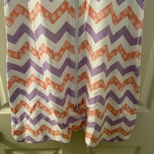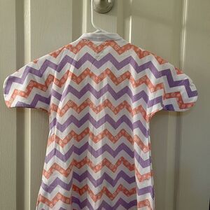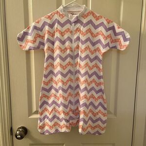 Revelae Cozy Baby Sleeper Swaddle Wearable Blanket Chevron Size 3-9 Months. 100% Cotton. Purple and pink/peach chevron print with stripes on the purple and flowers on the peach/pink. New without tags.