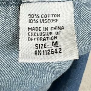 The Revelation Denim oversized blouse, is a perfect blend of comfort and style. Crafted with a mix of cotton and viscose, this medium-sized top features a relaxed fit that drapes effortlessly over your silhouette. The classic blue hue complements a wide range of outfits, making it a versatile addition to any casual or business setting. The blouse boasts a round neckline and short casual sleeves, ideal for transitional weather across summer, spring, and fall. Practicality meets fashion with two front pockets and a convenient button closure. Whether you're out for a coffee or attending a casual work meeting, this tunic-style top with its solid pattern and subtle artsy, Boho, chic themes is sure to impress.