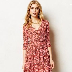 Geometric print on a oh so femme knit dress. Comfy and flattering. Side pockets, pull over styling, lining under, stretchy , 95% rayon, 5% spandex, 34 inches in length and 14 inches laying flat for bust.
