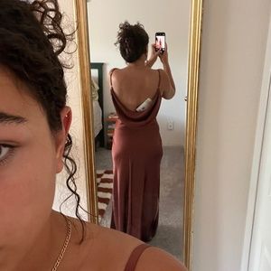 Revelry | Backless Nadia Satin Dress, Cinnamon Rose, Size 10, Petite Maxi
