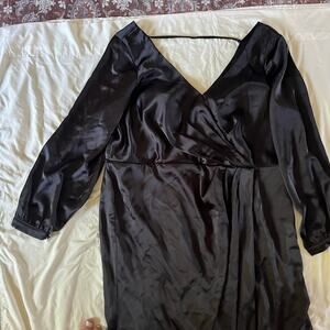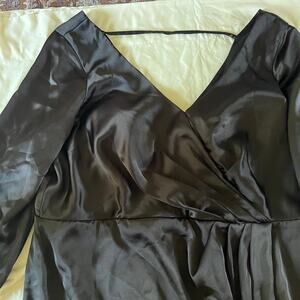 Revelry Black Vera Satin Long Sleeve V Neck Wrap Maxi Gown Plus Sz 26 Wedding