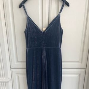 Color is a grayish blue. Dress worn once in wedding for pictures! Cleaned and ready for the next person!