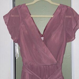 Revelry Bridesmaid Dress, Harper Chiffon Faux Wrap Dress, Peony 921, Size 12, Petite Length