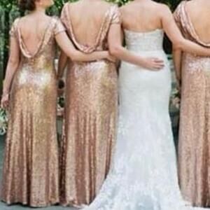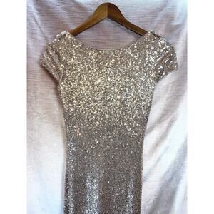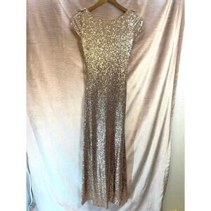 Revelry Gown Chloe Sequin Rose Gold Size 2 Petite Maxi Bridesmaid Prom Black Tie