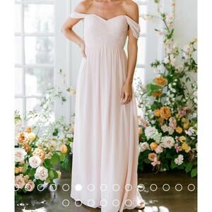 Revelry Kennedy Pink Chiffon Convertible Off Shoulder Maxi Dress