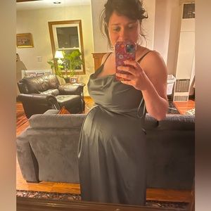 Revelry Maternity Skye Satin Dress in Eucalyptus, size 10P