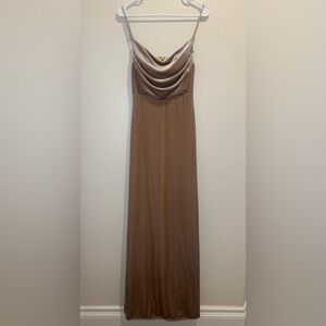 Revelry Skye Velvet Champagne Cowl Neck Maxi Dress Size 2