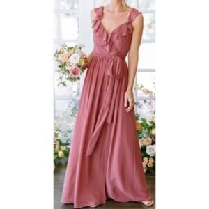 Revelry bridesmaid 2 mauve dusty rose maxi formal dress v neck chiffon flutter