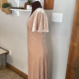 Revelry velvet bridesmaid dress size small champagne v neck flutter sleeve long