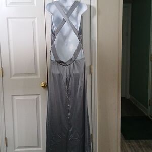 Revelry pewter crossover maxi formal ballgown prom dress Sz 20 EUC