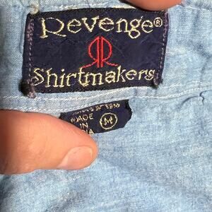 Revenge Shirtmakers Vintage Blue Chambray Military Style Button Down Size M