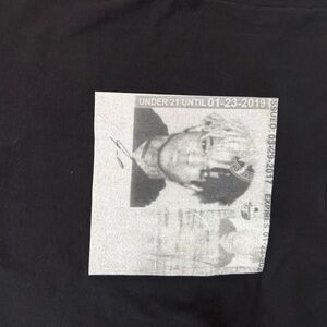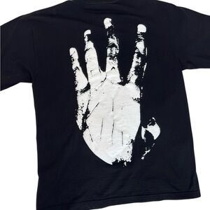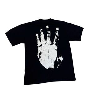 Stylish black graphic t-shirt featuring a unique design. Perfect for casual wear.see measurements for sizing since size tag is missing.