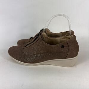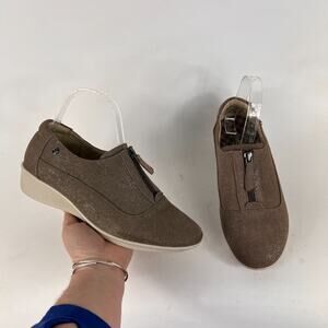 Revere Tangier Zip Loafer women's size 8 taupe metallic leather zip shoes