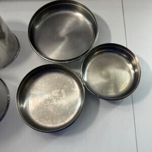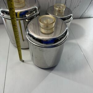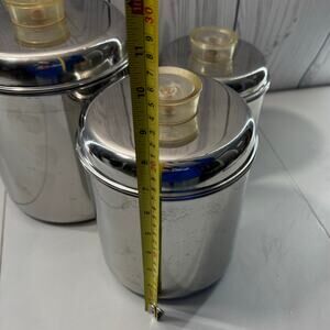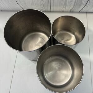 Flaws noted Please- some wear to interior, one small bend on middle size canister