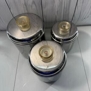 Revere Ware Set 3 Stainless Steel Canisters MCM Lucite Tops Storage Stackable