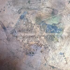 The product is a vintage Revere Ware stainless steel copper clad 7 inch skillet without a lid, made in the USA. This skillet is compatible with electric and gas stoves, features a round shape and a silver color. It is part of the collectible cookware set and is ideal for cooking on the stovetop. The stainless steel material and surface coating ensure durability and even heat distribution for a reliable cooking experience.