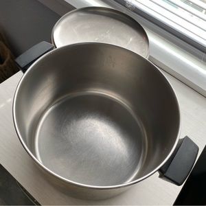Vintage Revere Ware 1801 8 Qt Stock Pot Copper Bottom with lid Sits flat. Good used condition.