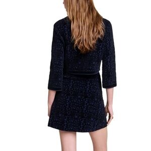 Velvet-jacquard cropped cardigan: V-neck, three quarter length sleeves, front snap closures, front welt pockets