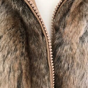 Looks like real fur and very practical. This beautiful vest can reverse in an instant to a water repellent side. Pockets in both sides. Nice and toasty warm.
